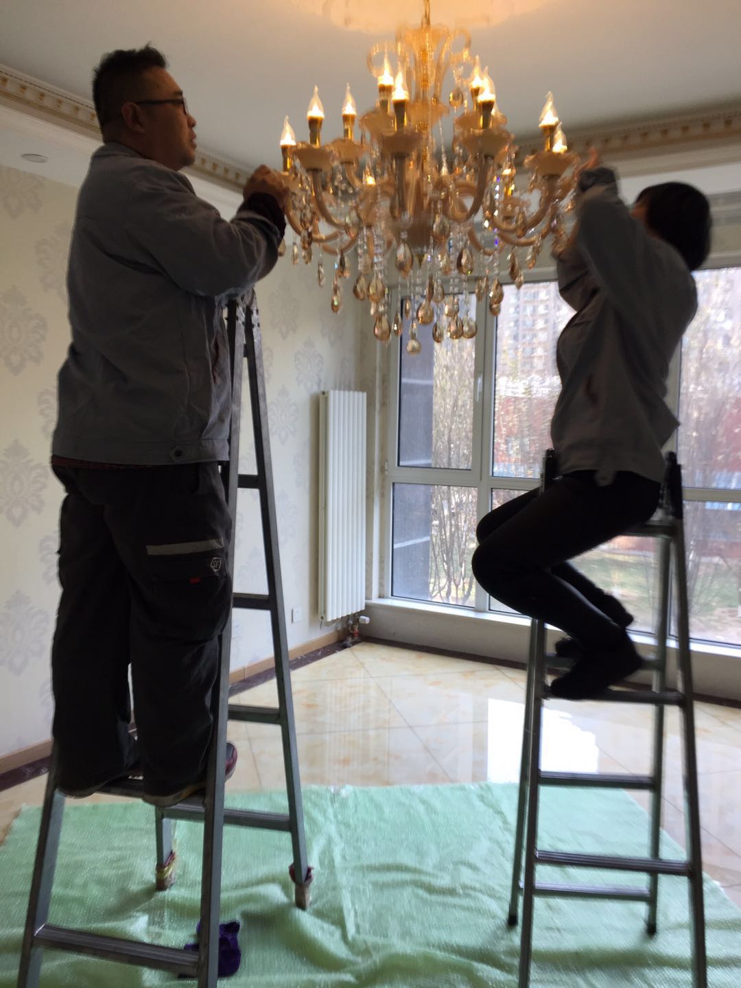 如果要把珠串全部拆下清洁,大型灯具要注意拆珠串时的灯体的平衡,不要拆完一边再拆另一边而造成灯体倾斜,导致灯体或外框变形;应当前后左右配合着拆卸。