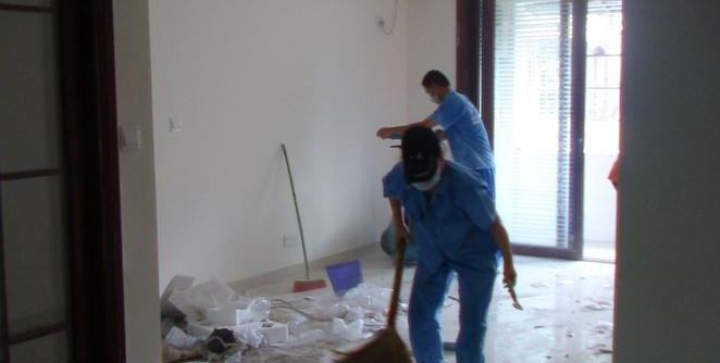 8、地面的清洗:其他所有保洁工作做完以后,就是地面的清洗了,地面也要分材质,是木地板的、还是瓷砖的、或是石材的,当分清后就选择专用清洁剂稀释后,开始清洗。地面上的胶渍可用刀片清除,顽固的可用去胶剂处理;最后一道工序做完后,应由领班全面检查一遍后,确认无遗留后撤离现场。