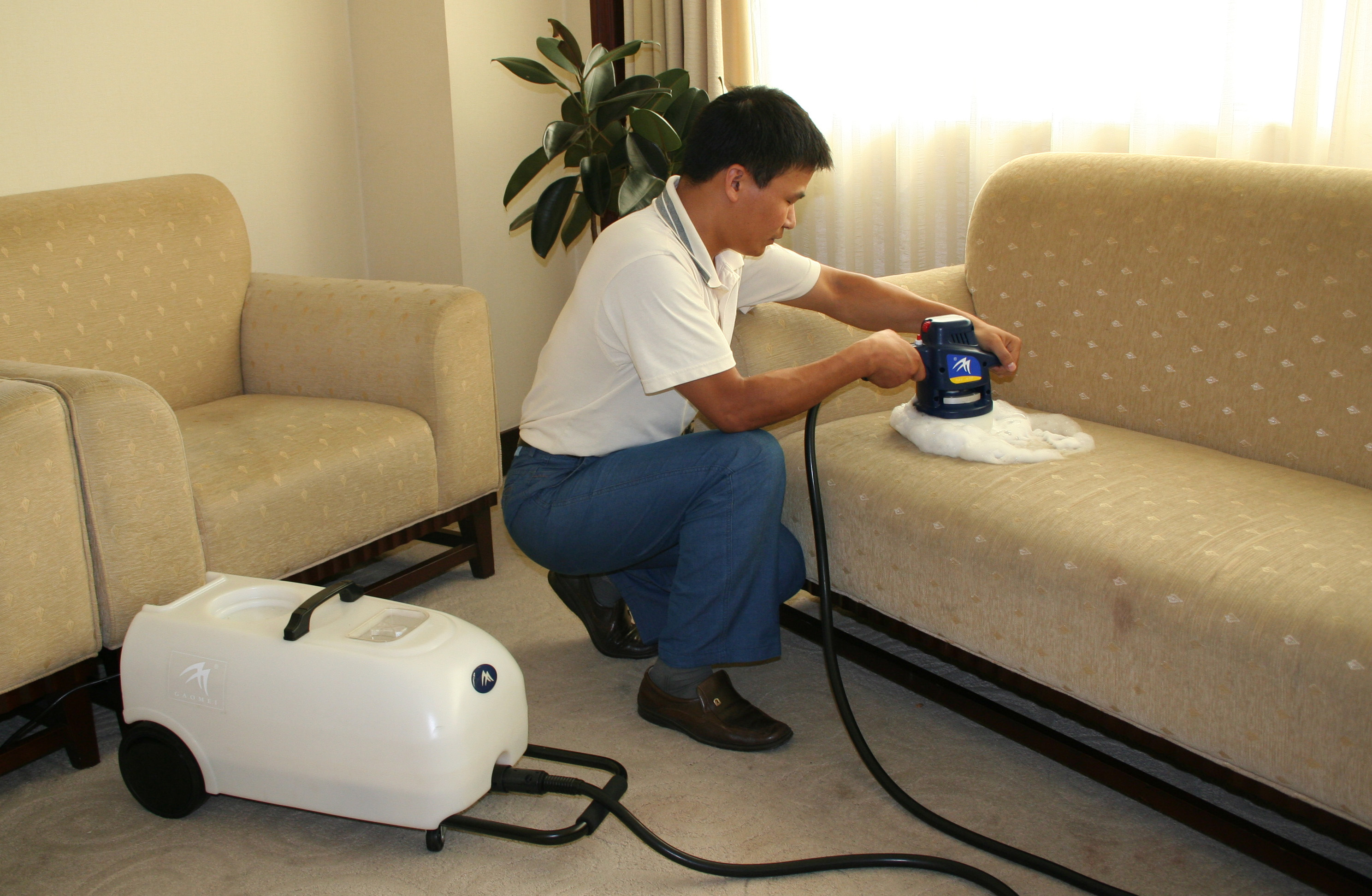 (1)沙发清洗设备: 全能去渍剂、沙发高泡剂或底泡清洁剂、干泡沙发清洗机。